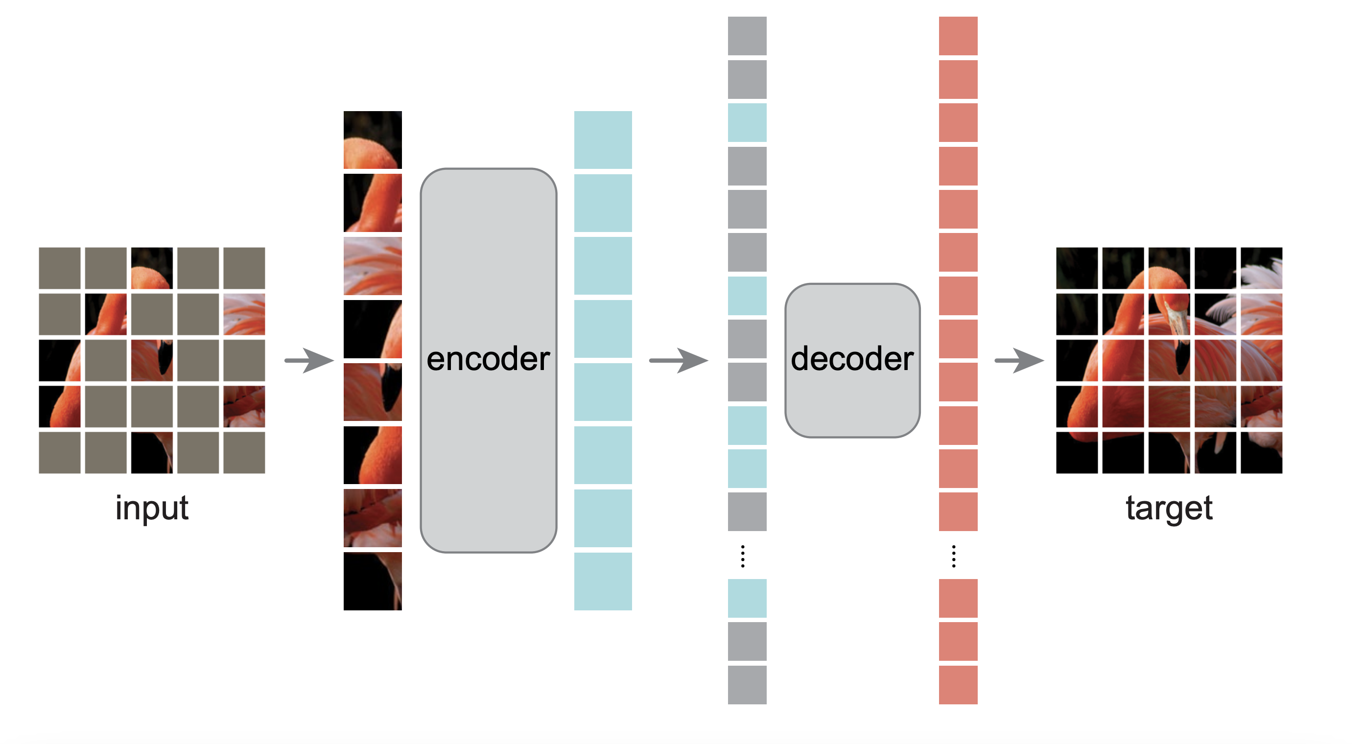 MAEs are a form of denoising autoencoders that aim to reconstruct a full image given only random patches of the original image. The researchers that developed MAEs were originally inspired by BERT, a language model that makes use of masked tokens. BERT will mask k% of the input sequence of words and learn to predict the masked words [3]. With the introduction of vision transformers that tokenize images into individual patches, this sort of masked prediction model can be applied to images instead of purely relying on convolutional operations.